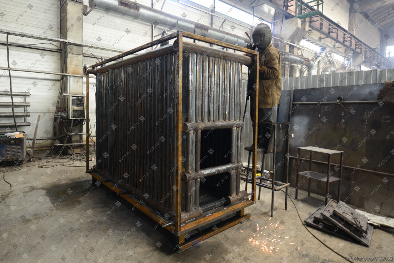 Все водогрейные котлы 1 1 МВт нашего производства - стальные, горизонтальные, водотрубные, прямоточные и компактные. Трубная часть котельного блока выполняется из труб различных диаметров, материал труб сталь 10 и 20. Блок снаружи обваривается стальной охлаждаемой полосой, поэтому в наших котлах исключена возможность задымления котельного зала. Снаружи на каркас из профильной трубы и швеллера крепится утеплитель и декоративная обшивка из полимерного листа. В обшивке предусмотрены лючки для очистки поверхностей нагрева.