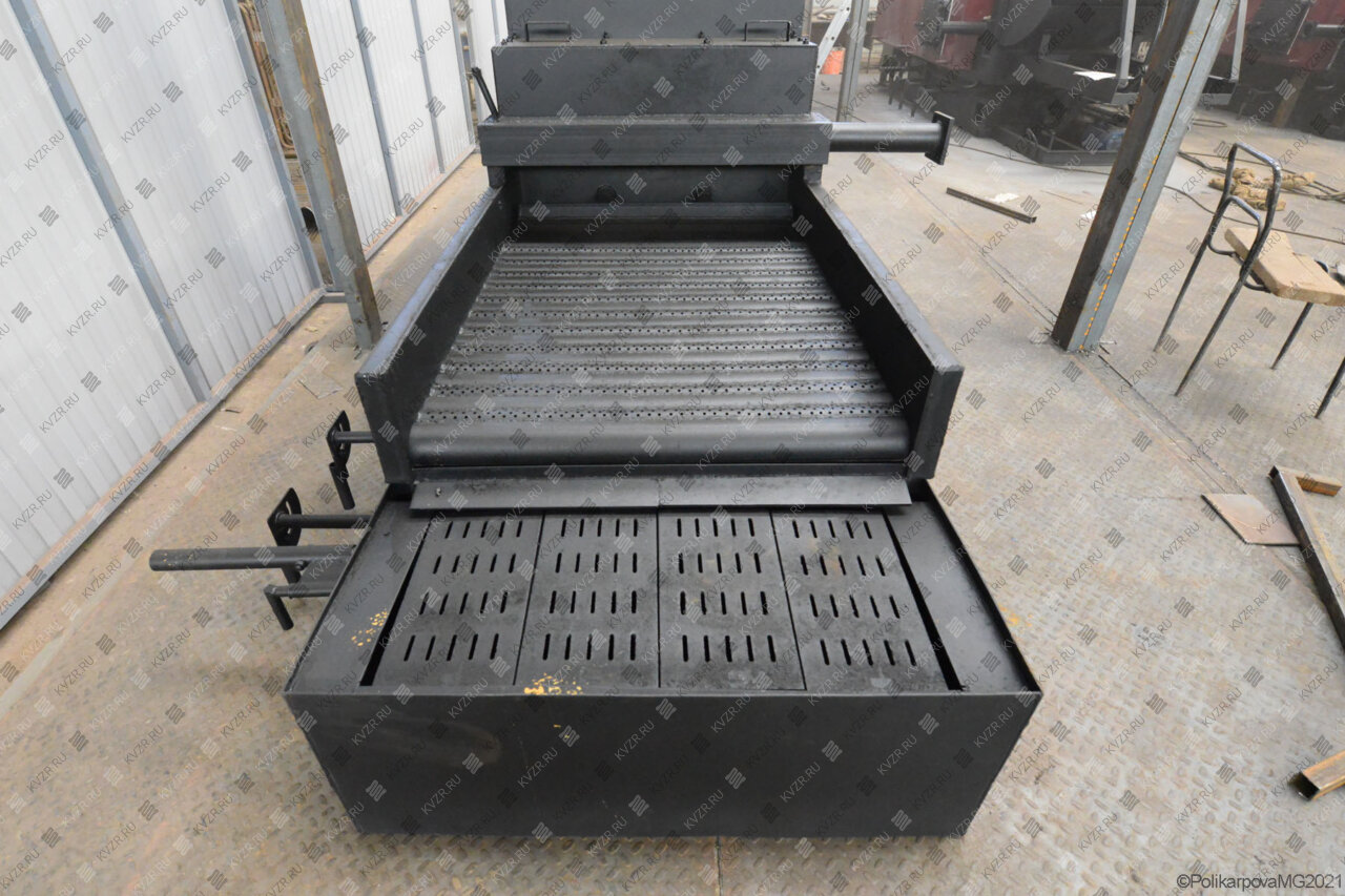 Данные модели поставляются двумя блоками - топочный блок, механический забрасыватель и топка с опрокидывающими колосниками. Топливо в бункер забрасывателя подает скребковый транспортер топливоподачи или ленточный транспортер топливоподачи. На фронте установлена плита для крепления забрасывателя, на фронте и на боковой стенке котла установлены дверки для обслуживания топки и контроля процесса горения. Сброс шлака в канал золошлакоудаления происходит через проем, образующийся на топке при повороте опрокидывающихся колосников.